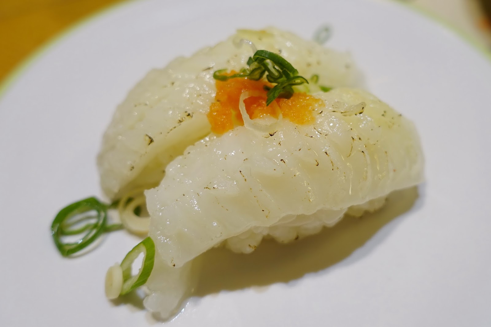 丸壽司炙燒比目魚鰭邊肉,綠盤80。請務必要點炙燒的,才不會太油膩。