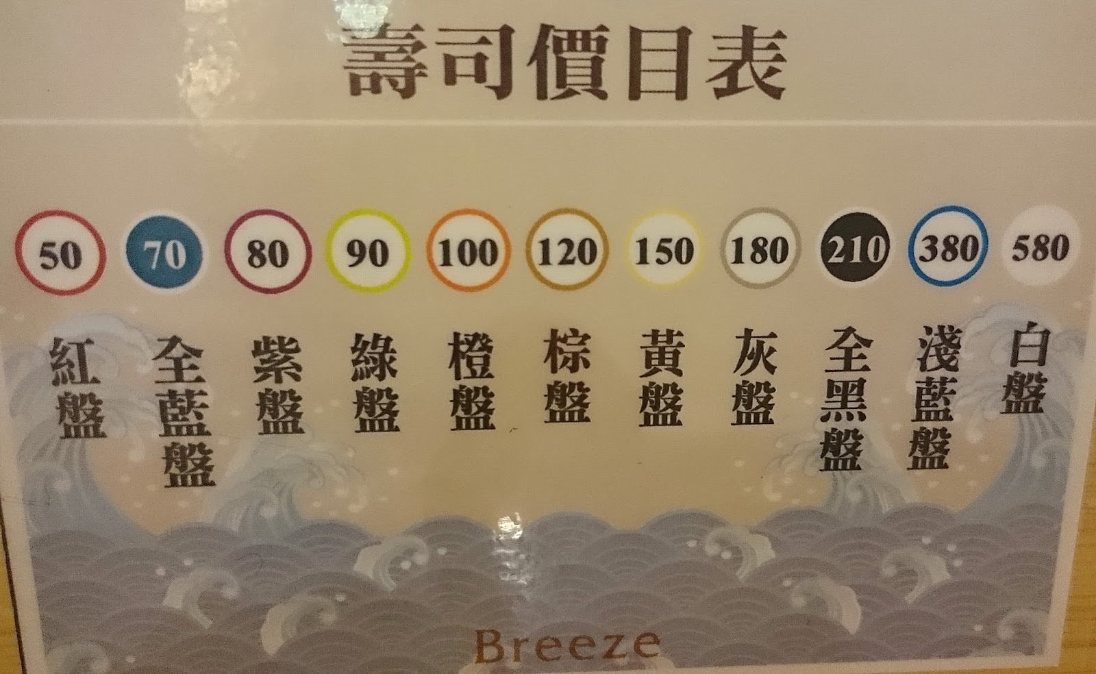 排名第三名的是中興志迴轉壽司。我吃過的中興志是在Sogo復興館地下三樓,它跟丸壽司一樣是單盤不同價格計算的。純粹以食材的新鮮度跟美味程度而言,它跟丸壽司的差距不會太多,但是丸壽司份量給得比較爽快,相對起來同樣的預算吃中興志會沒有飽足感,因此性價比偏低的結果,使得它只能名列第三。如果丸壽司不用排隊的話,中興志幾乎是完全沒有吸引力的選擇。