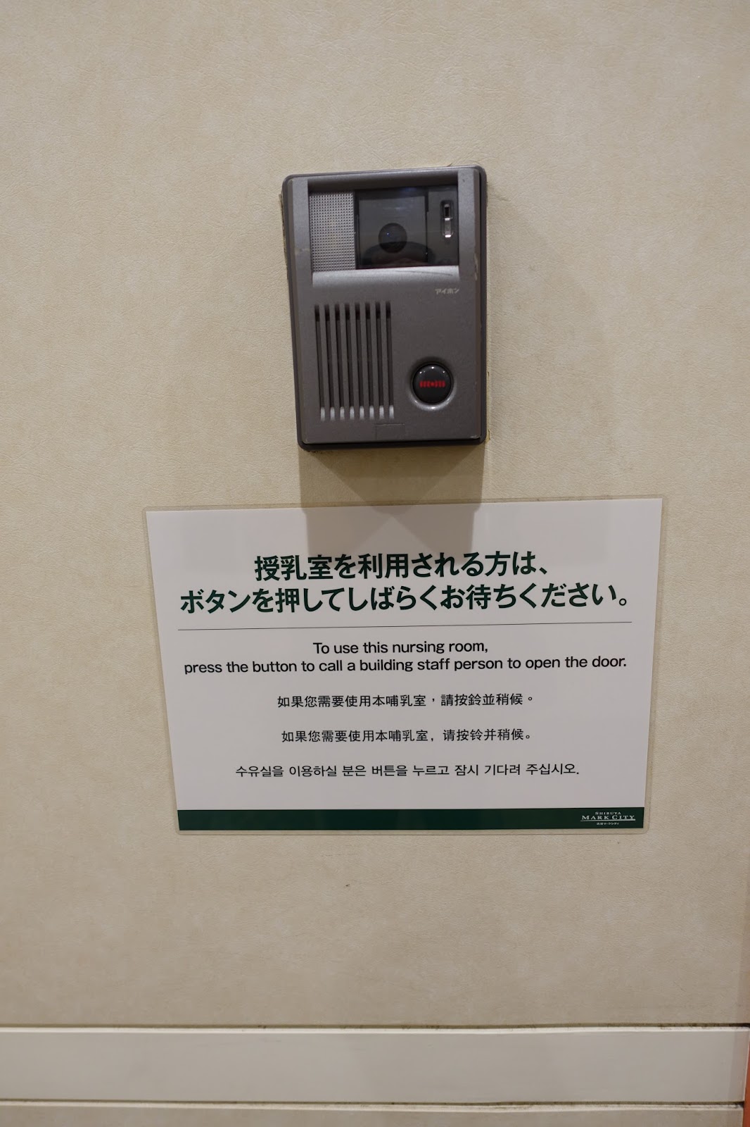 按下通話鈕後,只要跟服務人員講你要借用nursing room,就會有個小姐拿鑰匙出來幫你開門,並且教你怎麼從內部上鎖,跟提醒用完後要再通知他們過來重新鎖門。