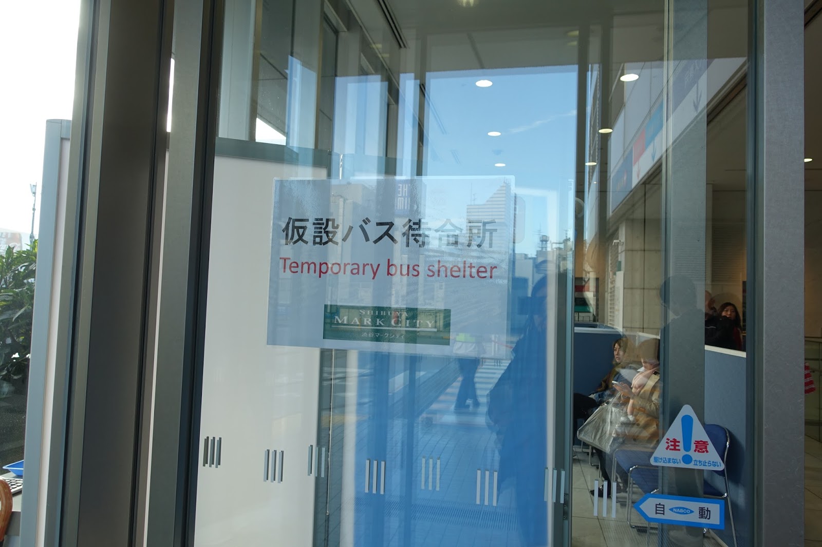 澀谷巴士站位在Mark City百貨的5樓,抵達時只看到了臨時設立的巴士站。