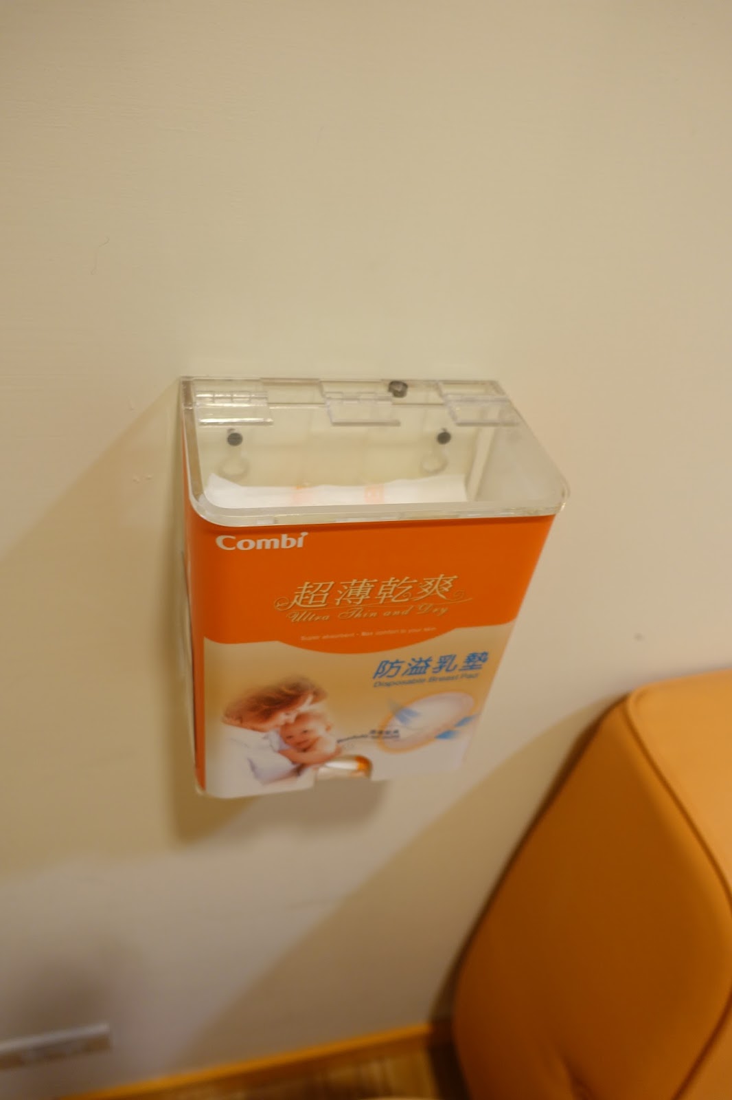 小哺乳室牆上還誇張的有免費供應Combi的溢乳墊!