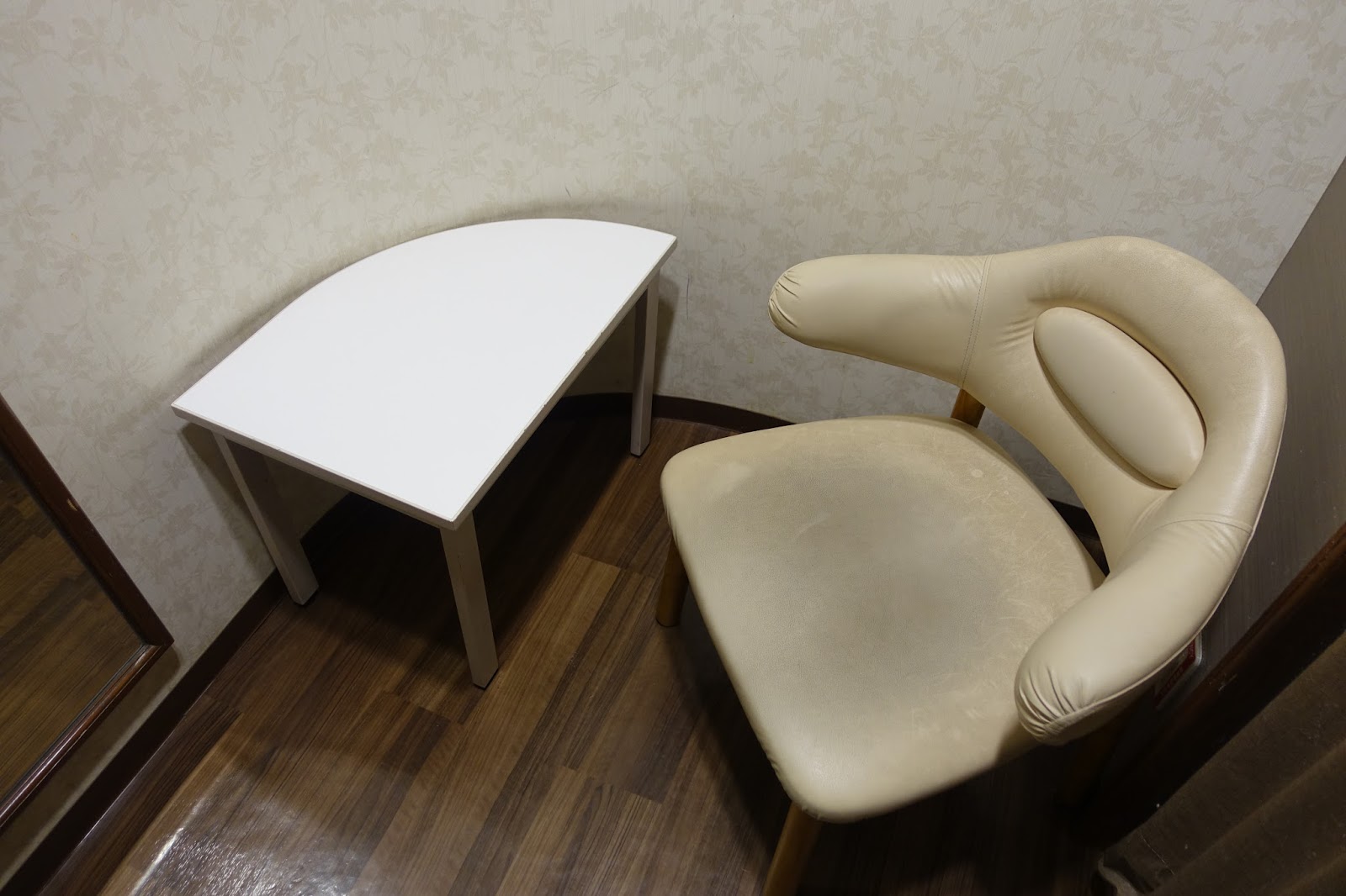 哺乳室空間一樣很狹窄,只有簡單的椅子與小桌子,跟一個不知道是否是用來讓人把衣服整理好再出去的鏡子。
