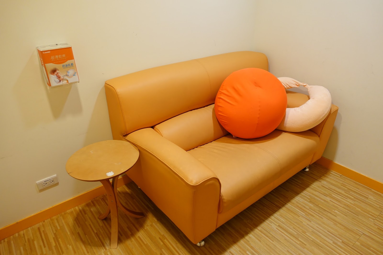 小哺乳室裡頭的設施也相當完善,提供了哺乳枕、沙發與小桌子,更重要的是有插座。