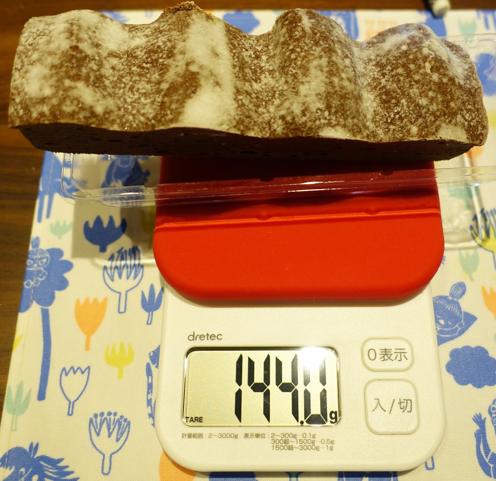 最後來面對一下現實,年輪家的單片年輪蛋糕,每次自己一個人吃都會不小心全部KO,原來他一片重達144g(已經扣除外面塑膠盒的重量)。