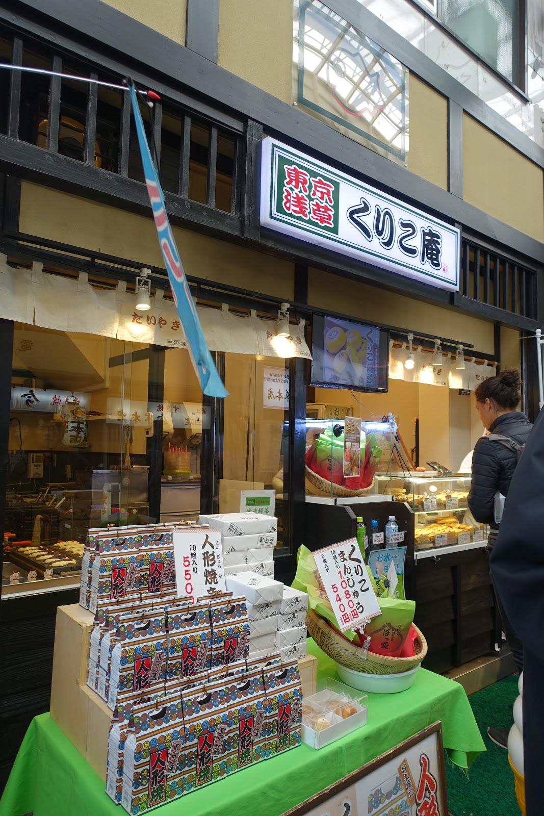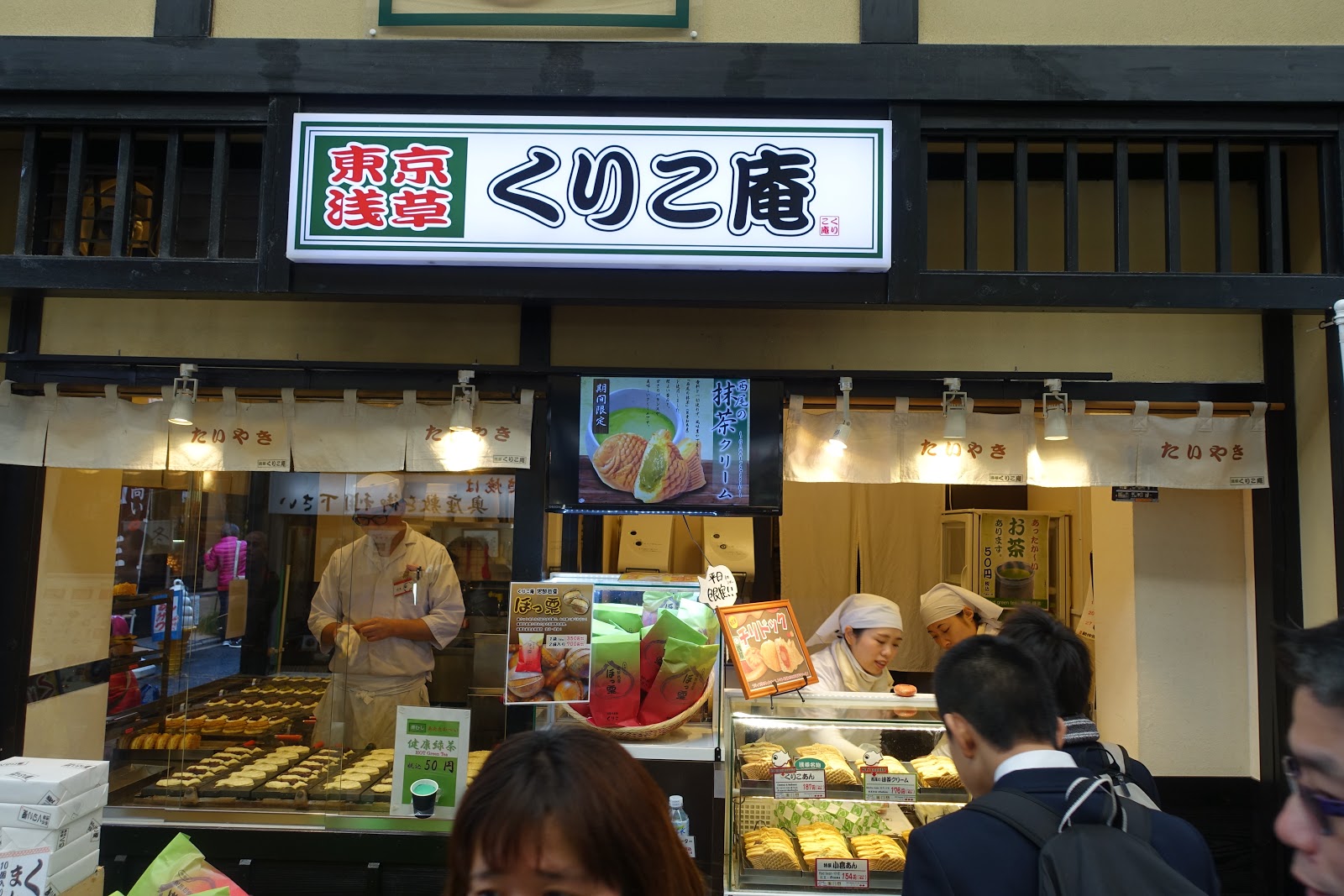 另一間也寫著本村家人形燒的店鋪在更裡面,原本以為是連鎖店應該一樣好吃,加上他有特別賣抹茶口味的人形燒,想說試試看新口味,就一起買了。