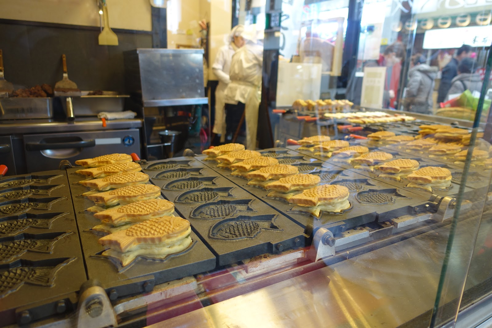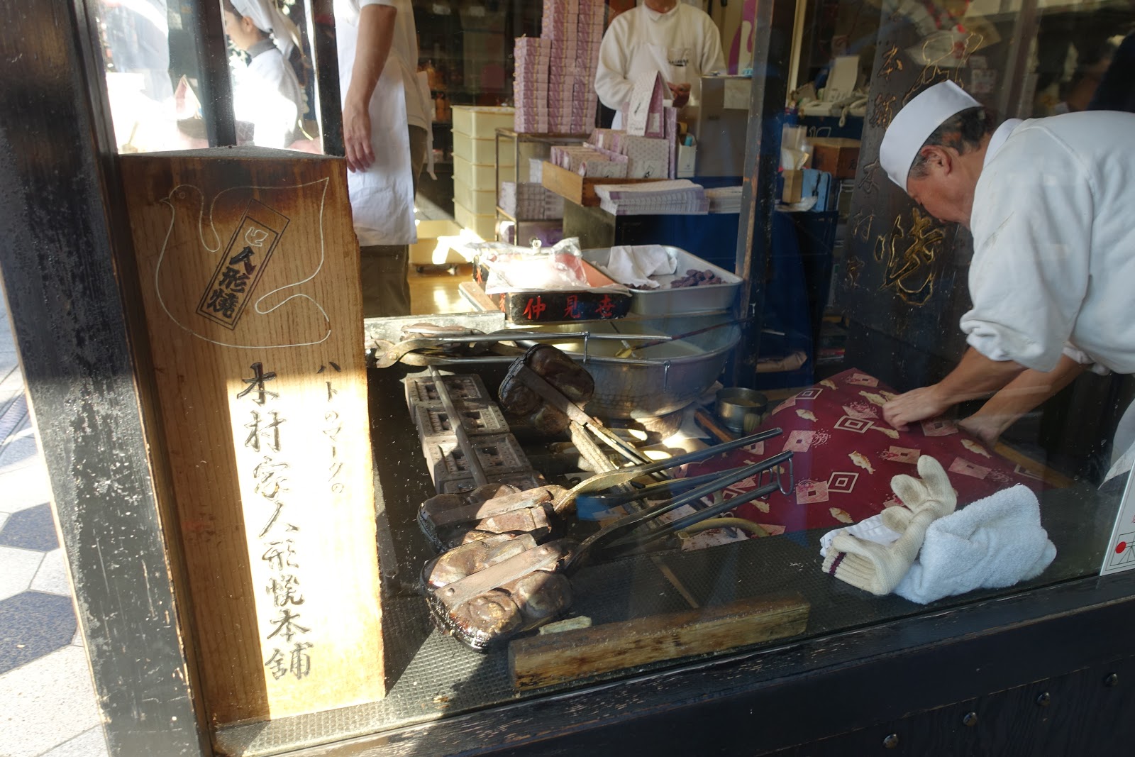 同樣寫『元祖』本村家人形燒本舖,按照我前面的說明,記得要選老師傅的這間才是最好吃的。