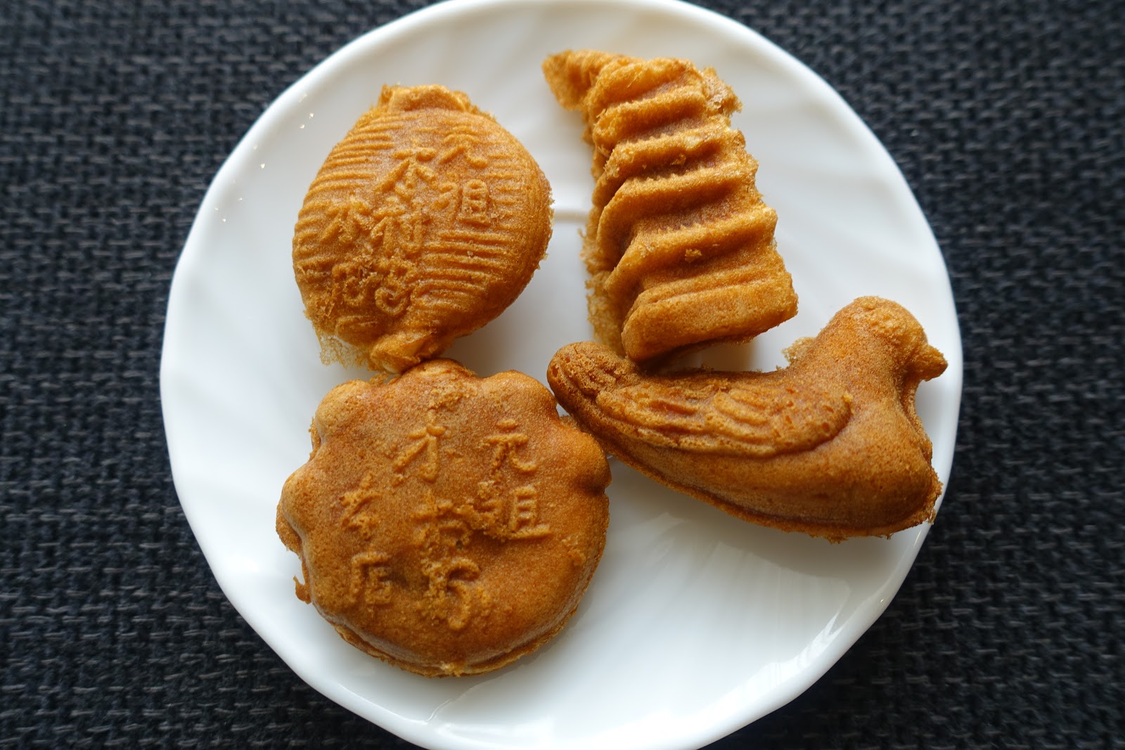 模子中的四種圖案分別為:鳥、九重塔、雷門的燈籠,還有一個圓形圖案比較複雜的,好像是雷神?