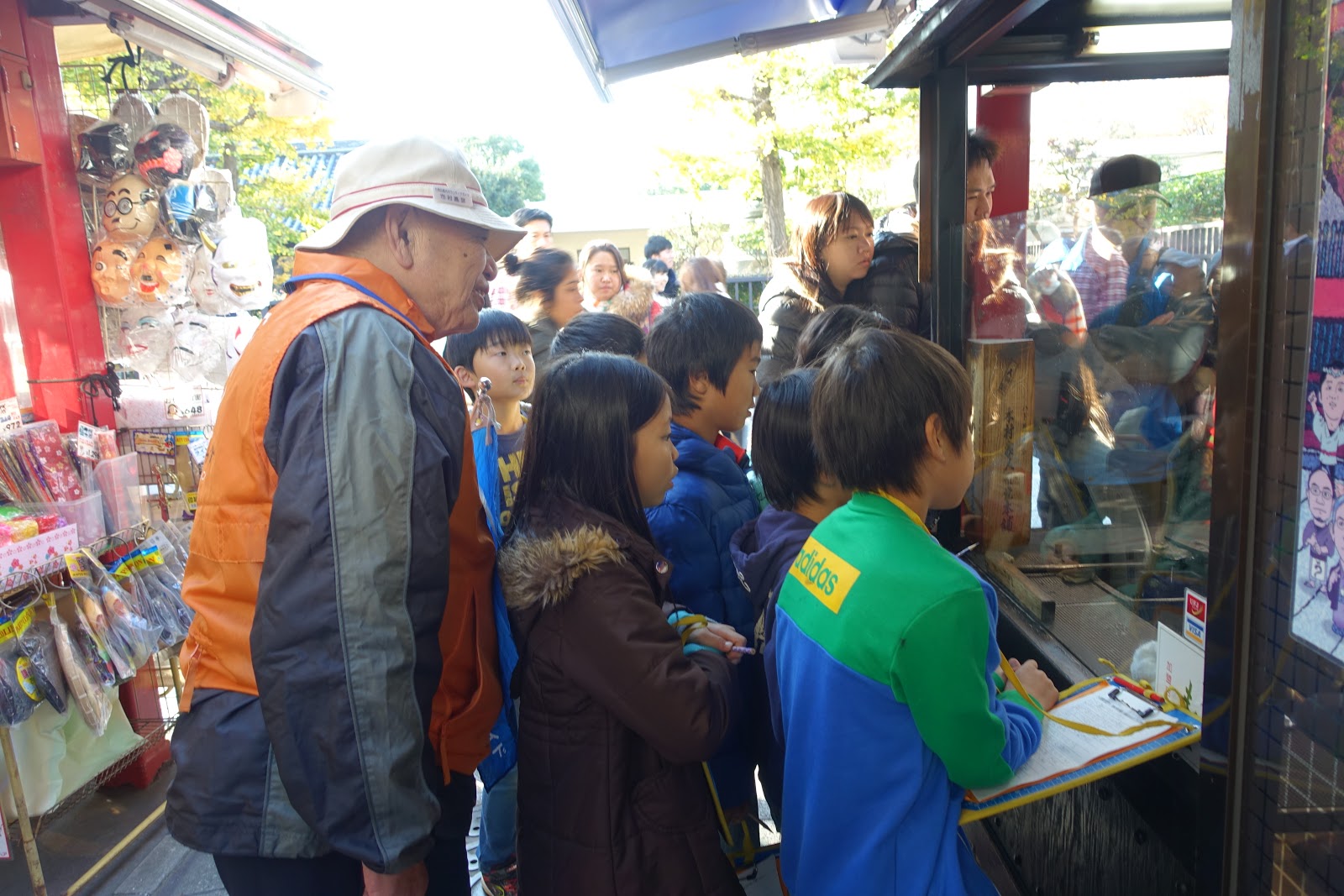 那日剛好遇到了小學生出來校外教學(應該是?),大家認真拿著筆記在觀摩老師傅製作這個經典的日式傳統點心。後面帶隊的似乎是老師,有一邊用日文在講解整個過程(都聽不懂就是)。