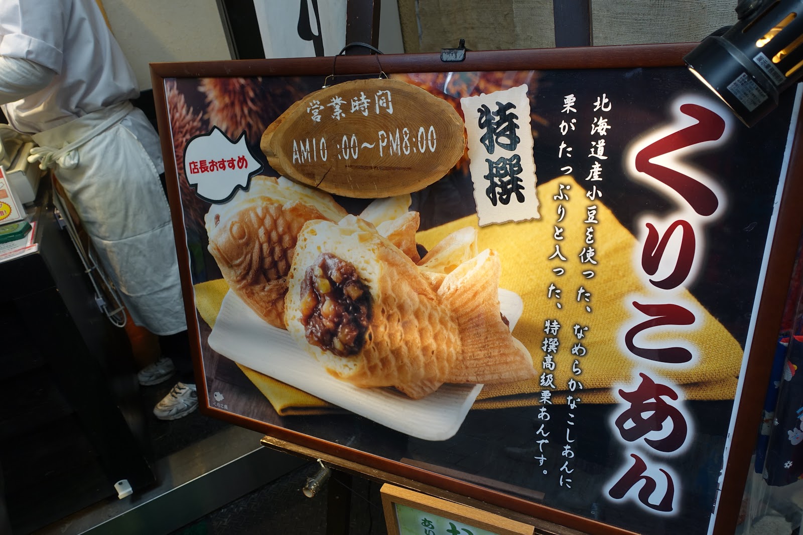 這家鯛魚燒專賣店也滿值得推薦的。他的特色是口味很多,甚至有當日限定的獨門口味。