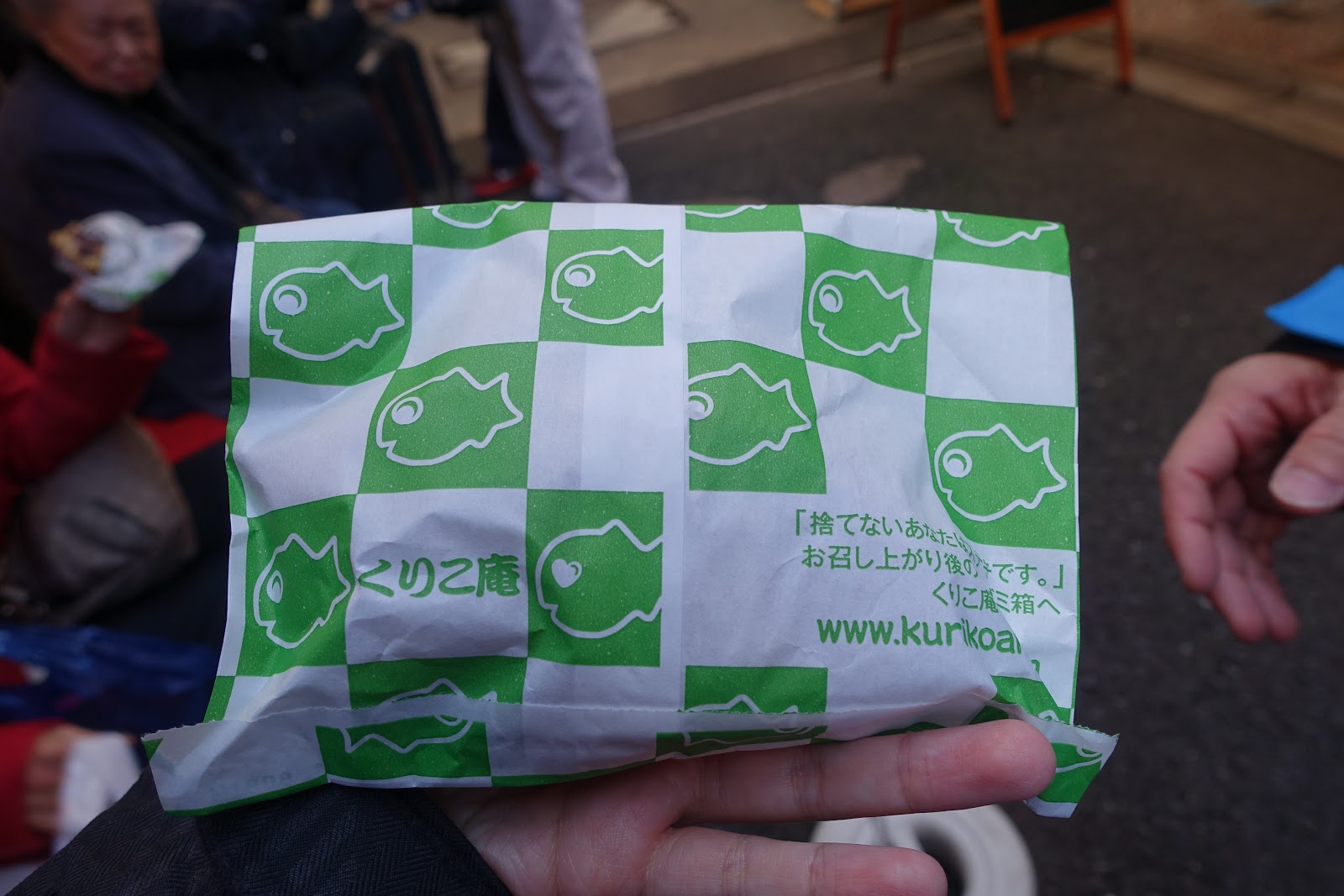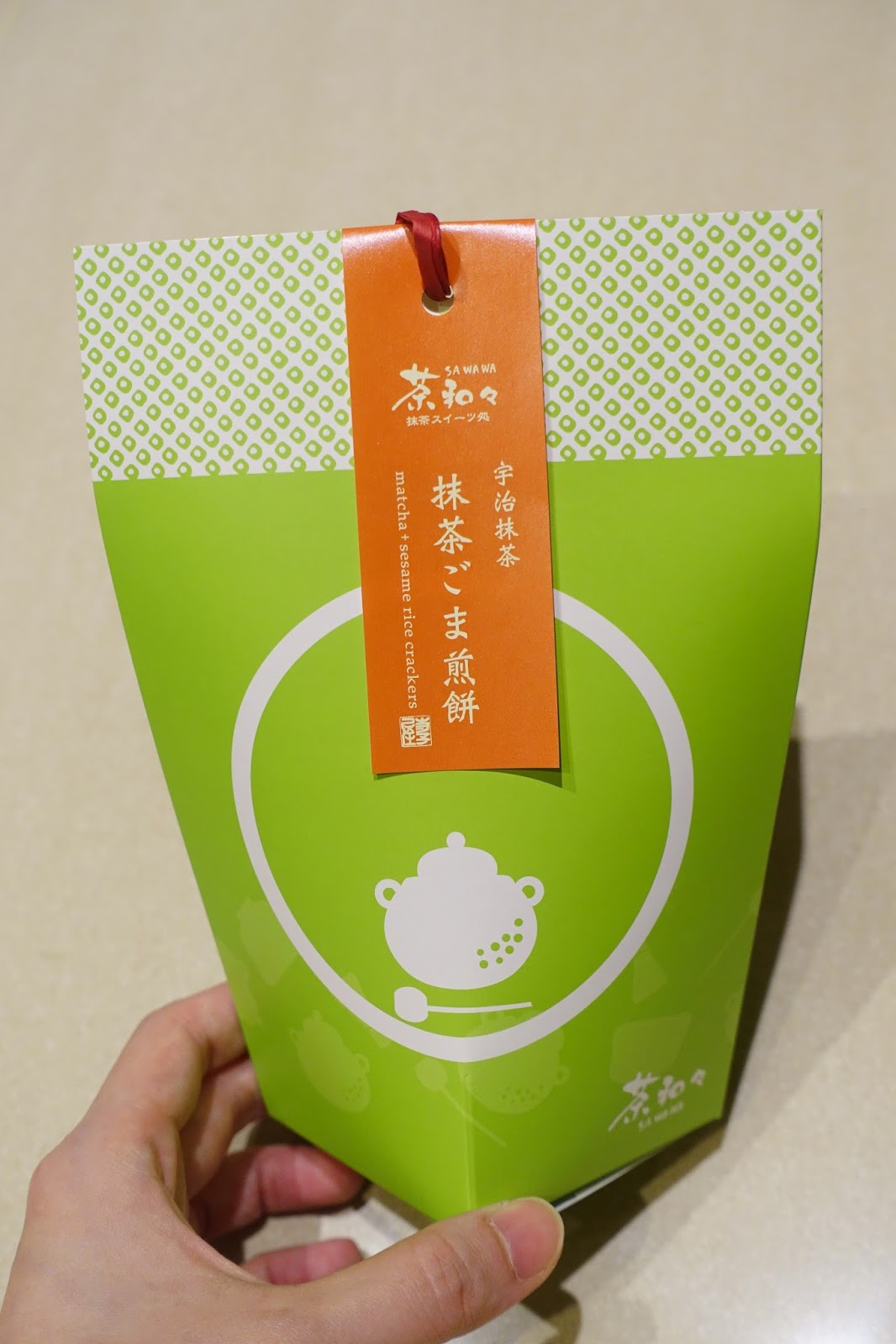 後來仔細比對過現場拍的照片和拿到的東西,終於看出,裝抹茶的盒子,上面綁的橡皮筋應該是綠色的;我買到的卻是紅色的,店員一整個拿錯給我!!但都已經回到臺灣了,只能默默怪自己沒注意。