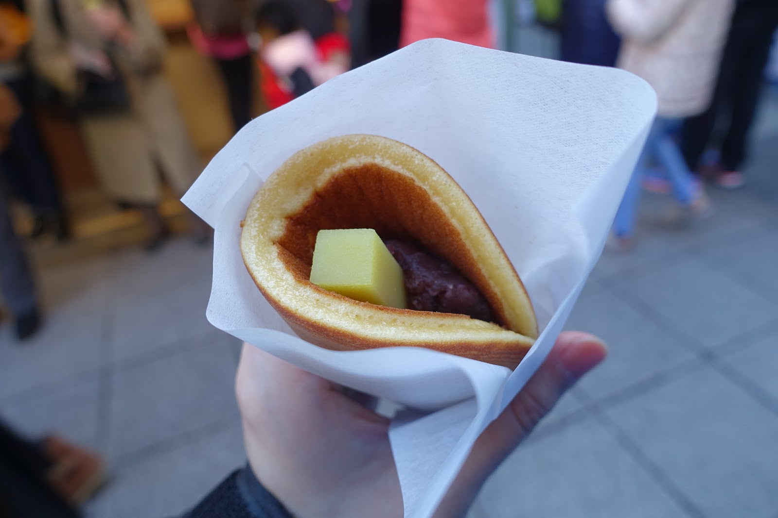 紅豆泥用料實在,不會有粉味。地瓜棒微甜,有點烤蕃薯的香味。重點是那個銅鑼燒的皮鬆軟又有彈性,並且因為是現做現吃,完全不用擔心皮被餡料浸濕而軟爛的問題。