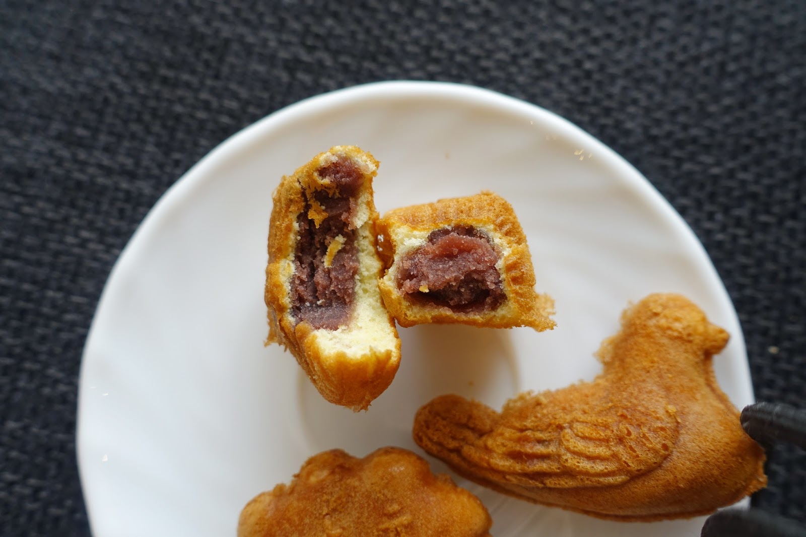 黃色方形長條塊就是特製的地瓜泥棒子。把這部分抽掉的話,吃起來幾乎跟銅鑼燒沒有兩樣。