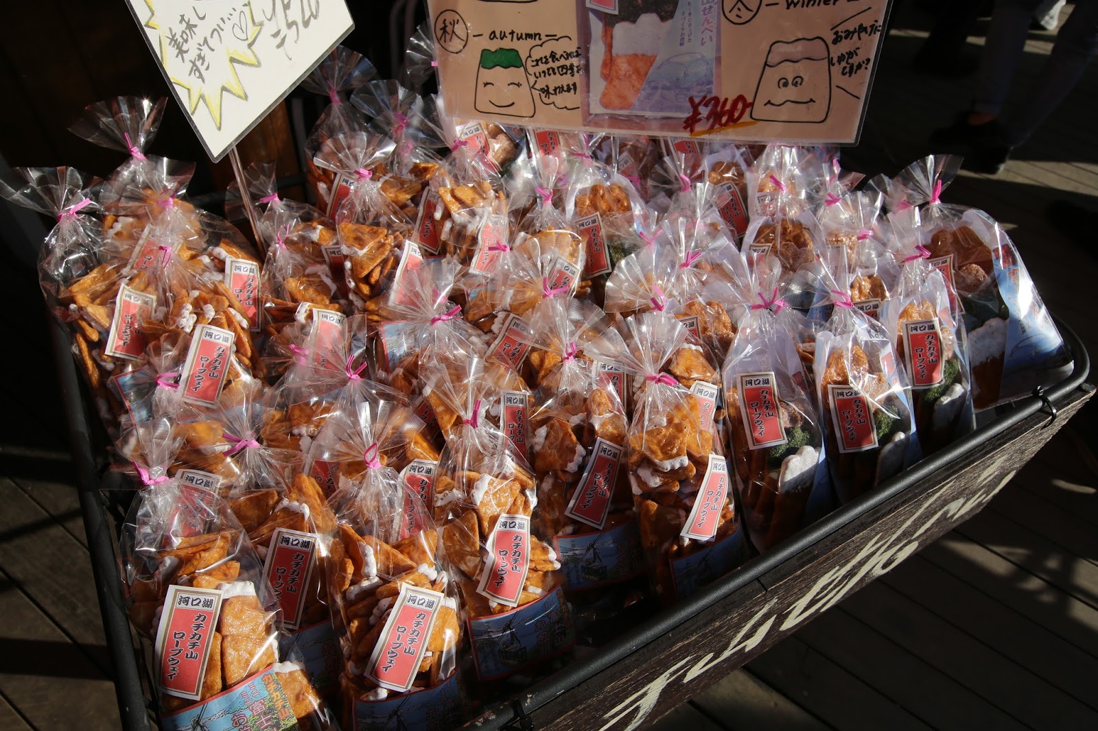 沒記錯的話,這一帶賣很多以富士山為主題的周邊紀念品,包括河口湖車站本身就有個紀念品店,往纜車等景點的路上也有不少小店,喜歡的話可以通通帶回家。