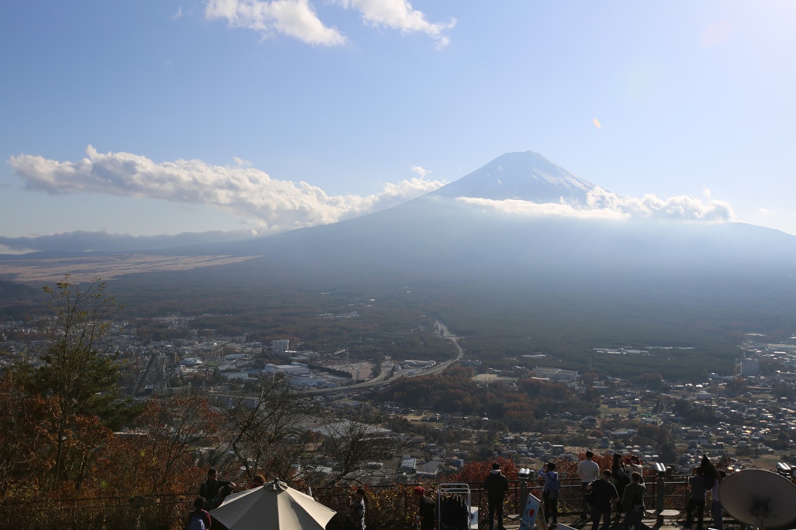 從山頂眺望富士山的感覺跟在平地還是有點差異的,那些擋人視線討厭的建築瞬間全部縮小,在這可以把富士山從頭到腳望一遍。