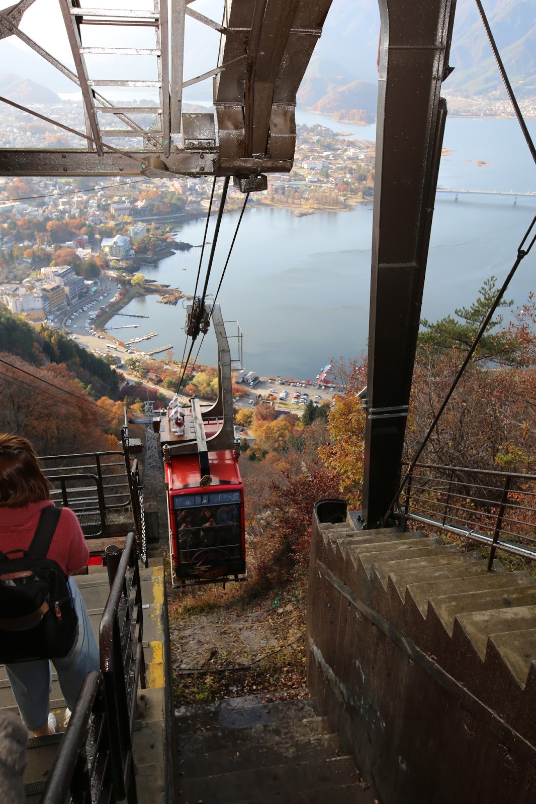 從山上眺望河口湖反而沒那麼美,因此那段纜車的確很值得的。