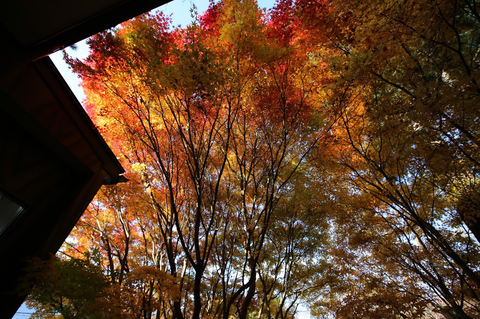 在淺草寺的時候欣賞金黃色的銀杏樹,到了河口湖又接著沉浸在橘紅色的楓林裡。因為不是原本特別訂的賞楓行程,能有這樣的收穫還滿幸運的。