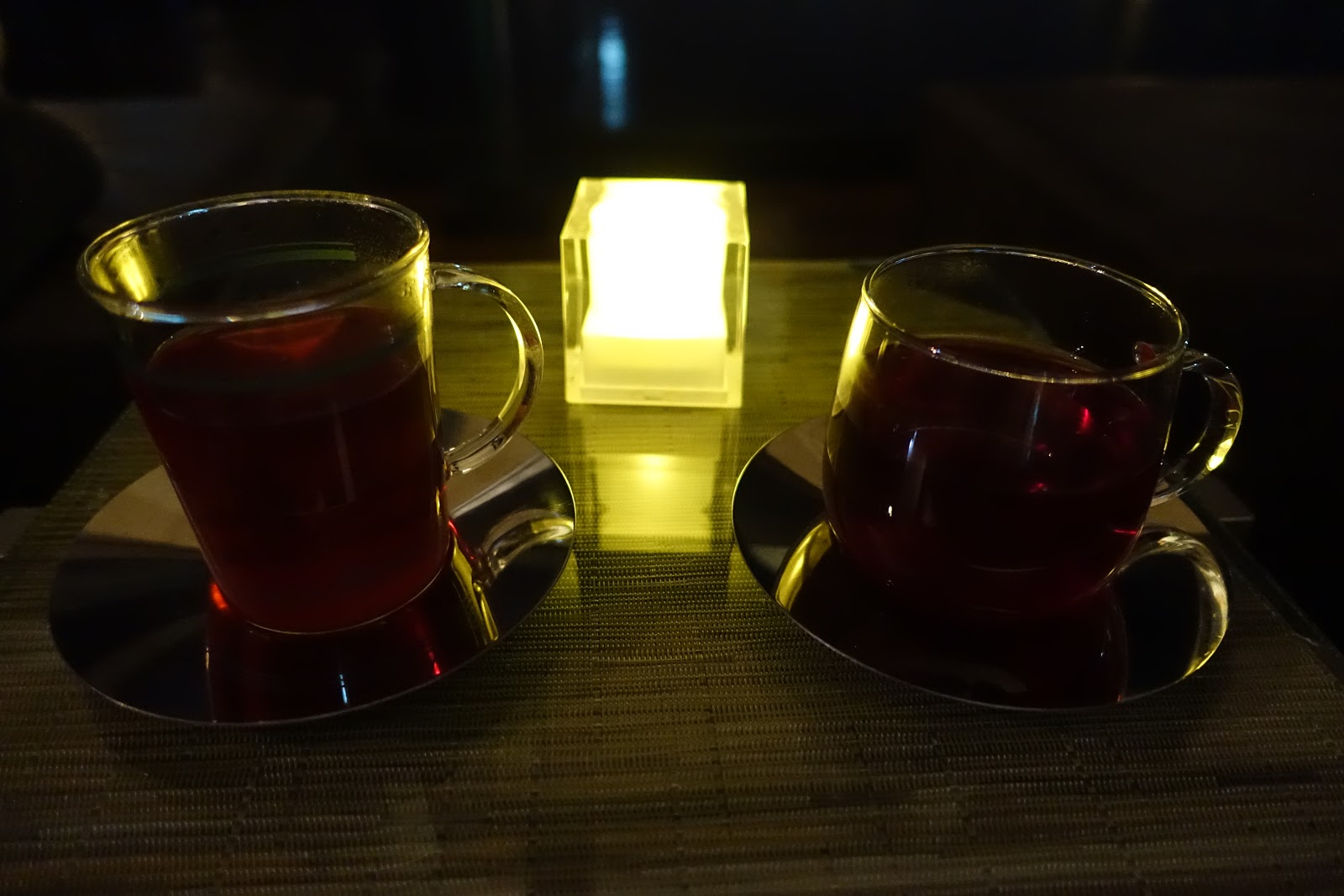 晚安茶泡好了,放在桌上的夜燈旁邊格外有情調。是個挺適合趁亂告白的地方~