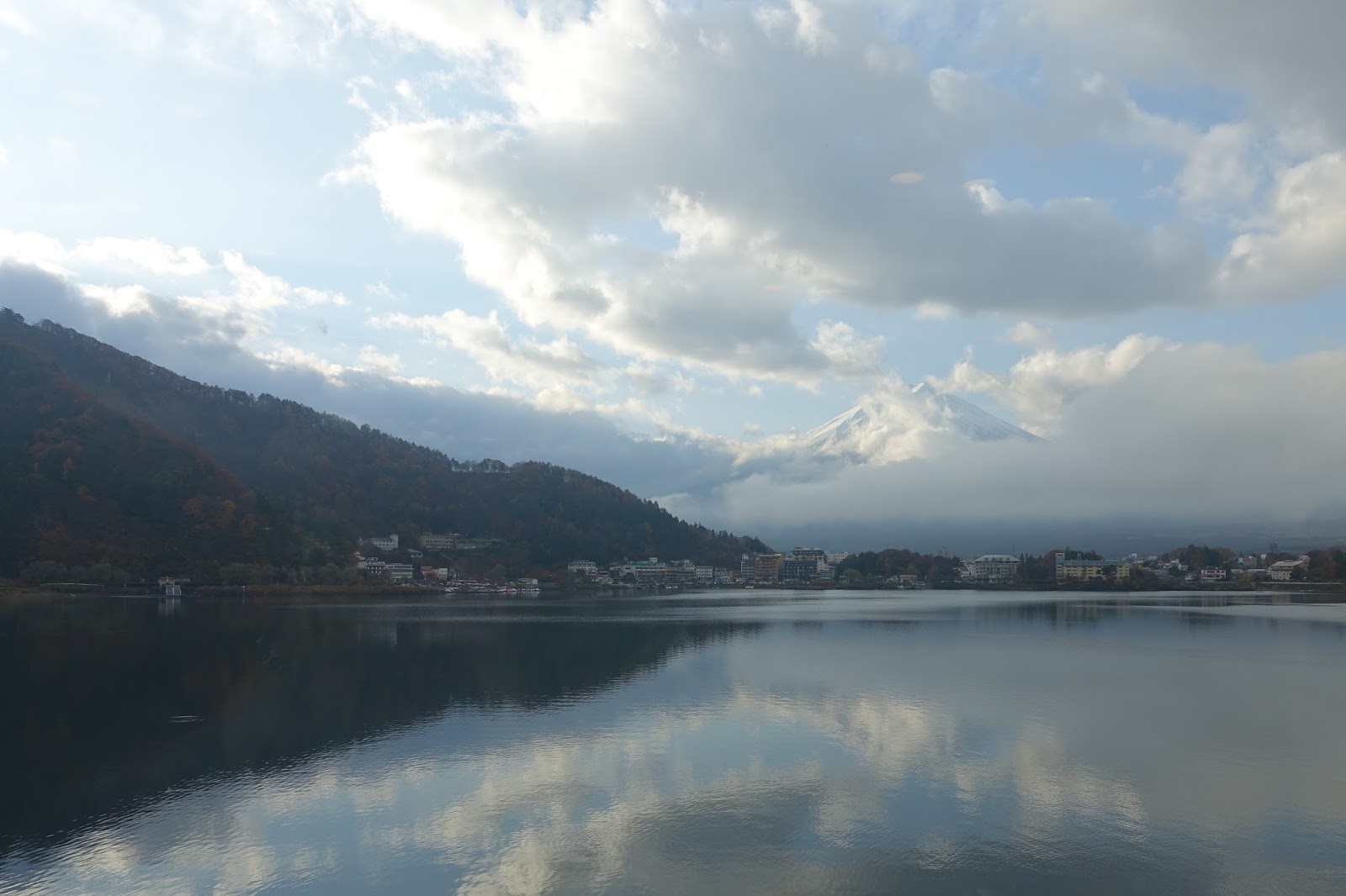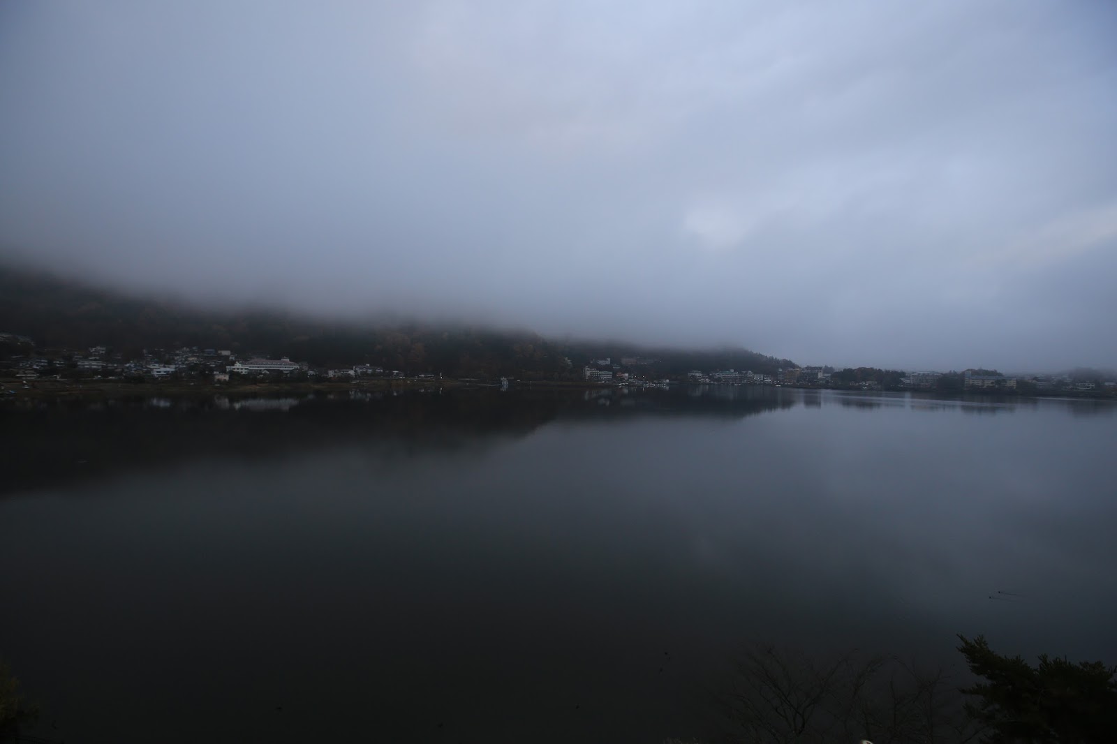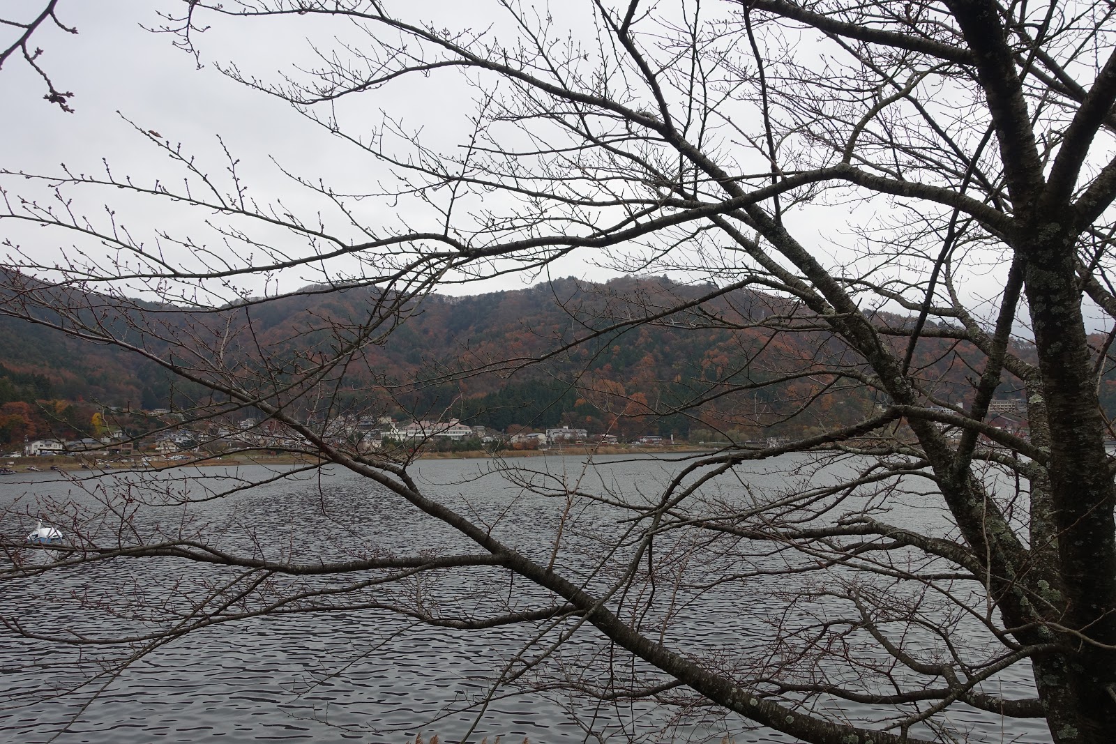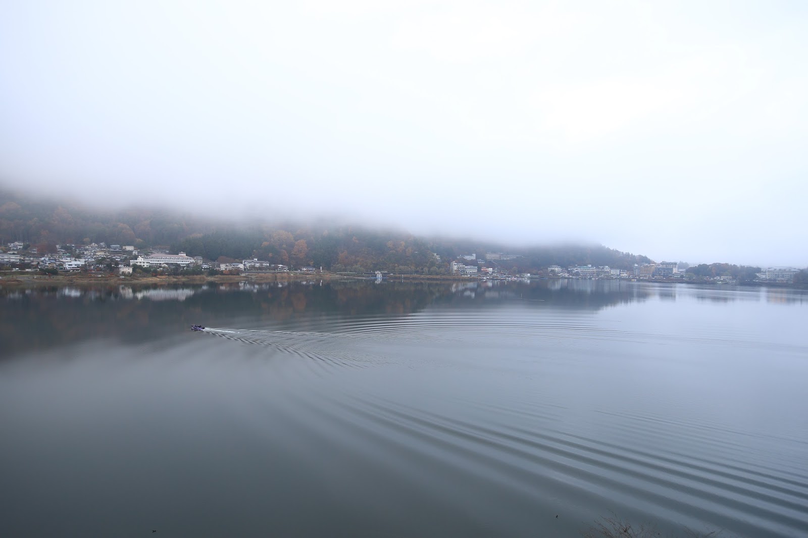 陰冷天氣中的河口湖,秋天的蕭瑟依然令人魂牽夢縈。