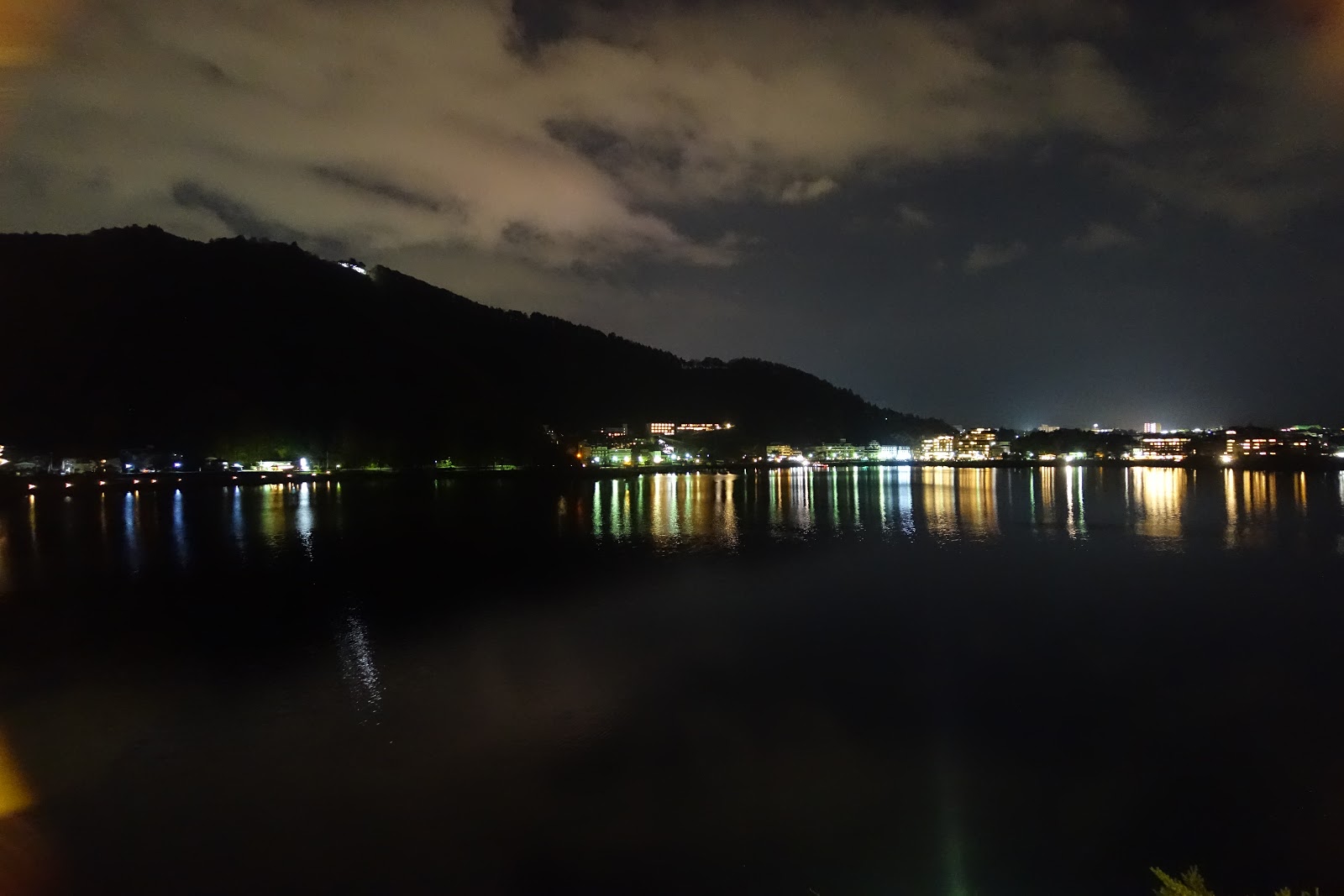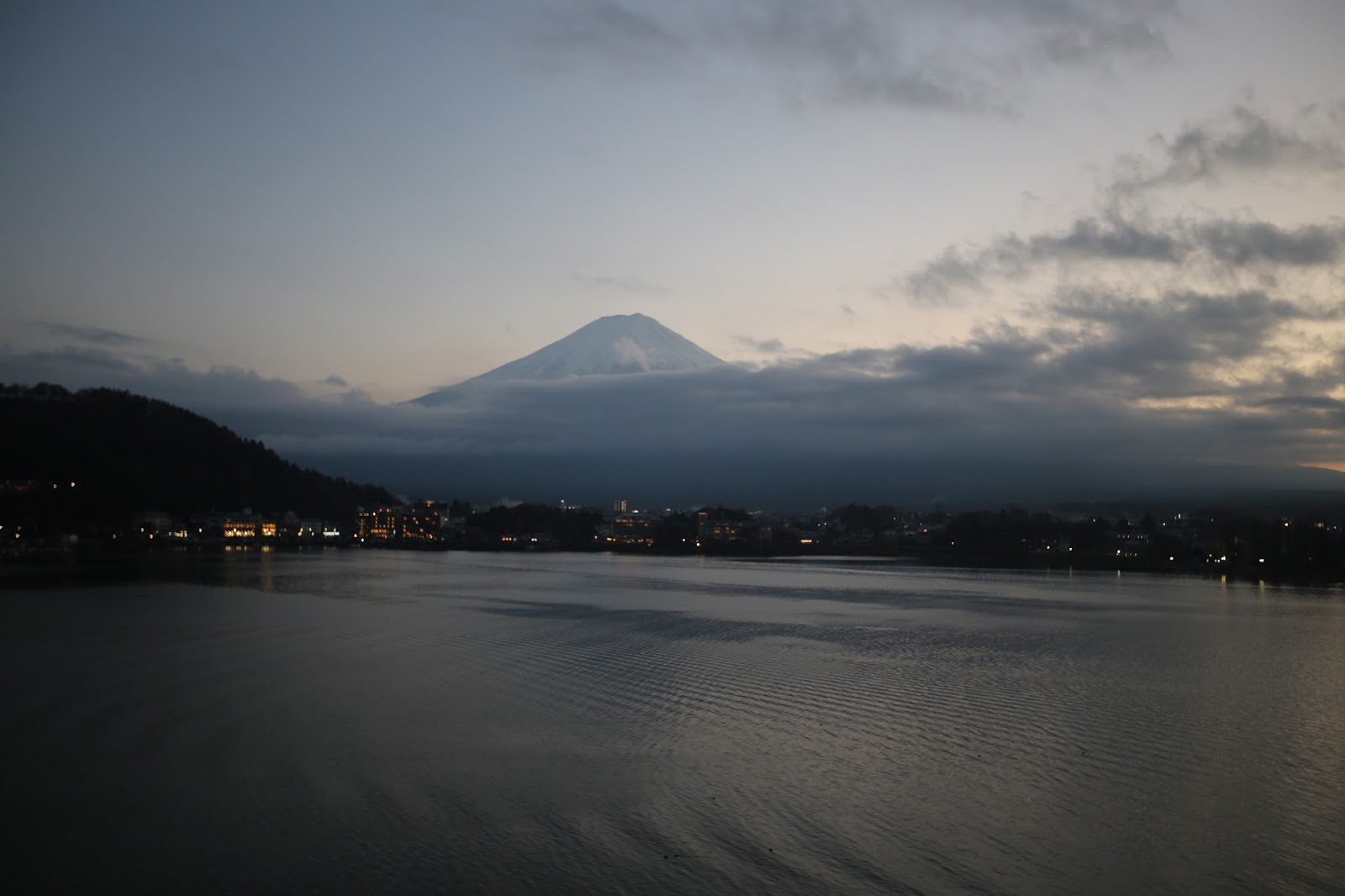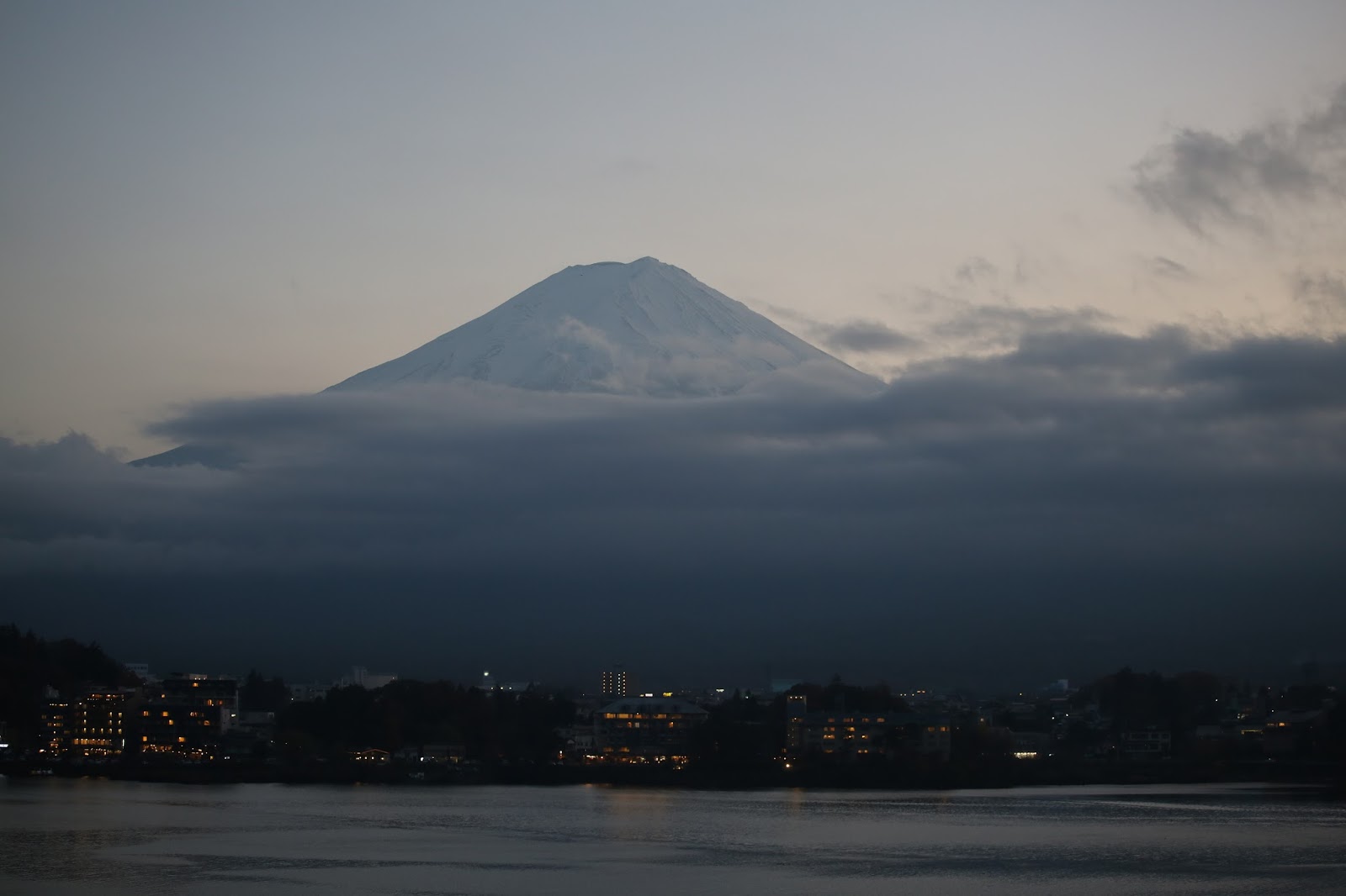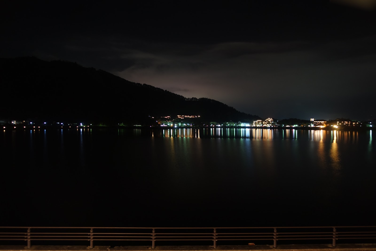 夜裡,只見河口湖上的霧氣越發深濃。白天熱鬧的觀光聖地,在此時緩步轉變為人煙稀少的世外桃源,空靈的燈火隨著湖水緩緩搖曳,像極了一首無聲的搖籃曲,帶著旅客們四處奔波的疲憊,以及平常為了上班賺錢受盡的無限委屈,悠揚遠去,也不要再回來了。