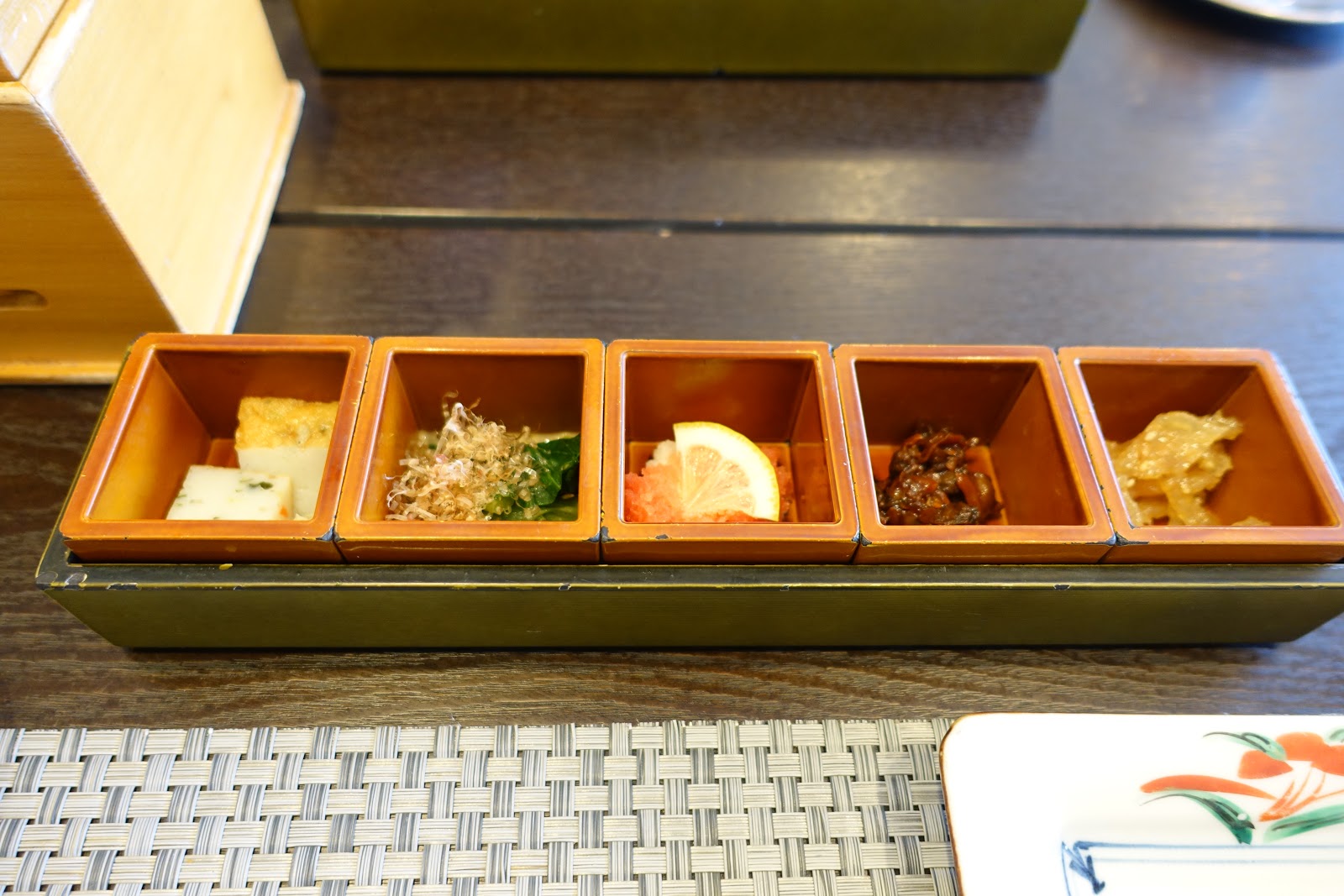 配飯的日本五種涼拌小菜組合。