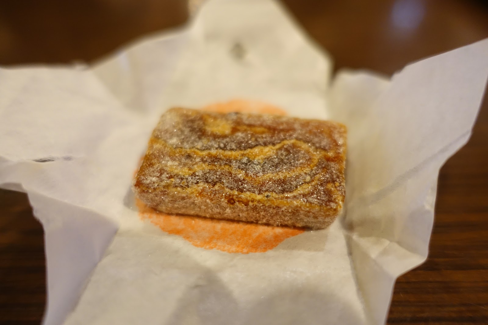 小點心打開來是使用果乾做成的精緻水果軟糖。