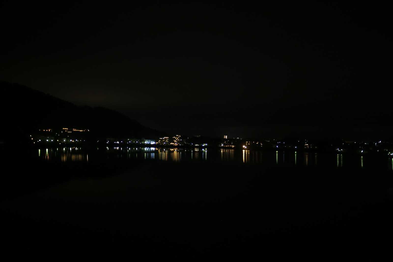 前一張圖是貼著玻璃遮光拍的,才能避開玻璃反光造成的光害。實際上正常透過玻璃看夜景,會有內景跟外景重疊的效果。
