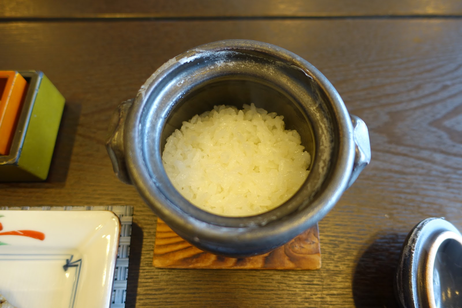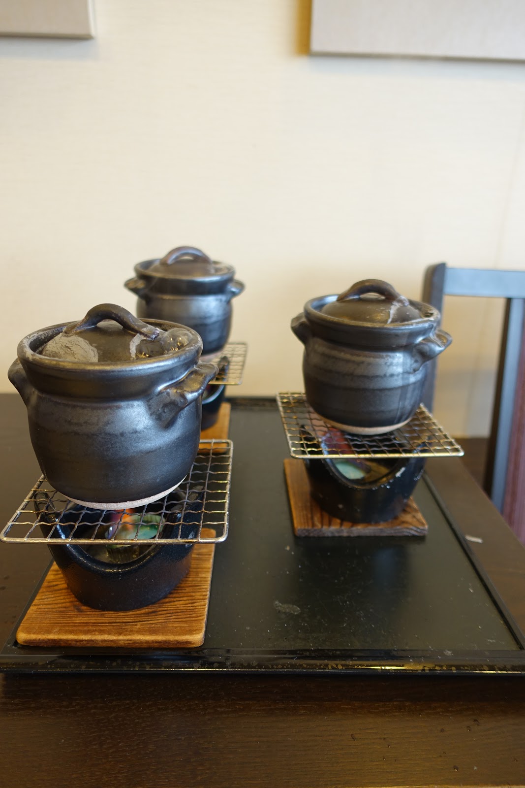 早餐的白飯也不是一般普通電鍋大鍋飯煮出來的,竟然是用這種迷你1人份的小土鍋,現場微火烹煮出來。這鐵定是在我們來用餐前就已經預先放下去慢慢蒸煮,到了用餐時間才能剛剛好端上桌。如此細緻的工法跟體貼客戶的服務,真的很嚇人。