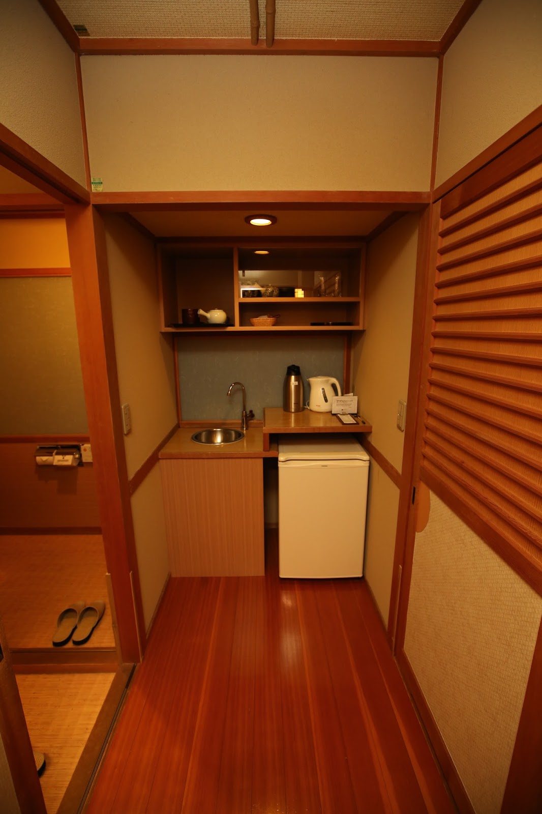 轉角處設有簡易的茶水間,有過濾過的飲水器可以使用,並且提供了日式茶具跟茶葉讓大家能在飯店裡悠哉的喝茶聊天。