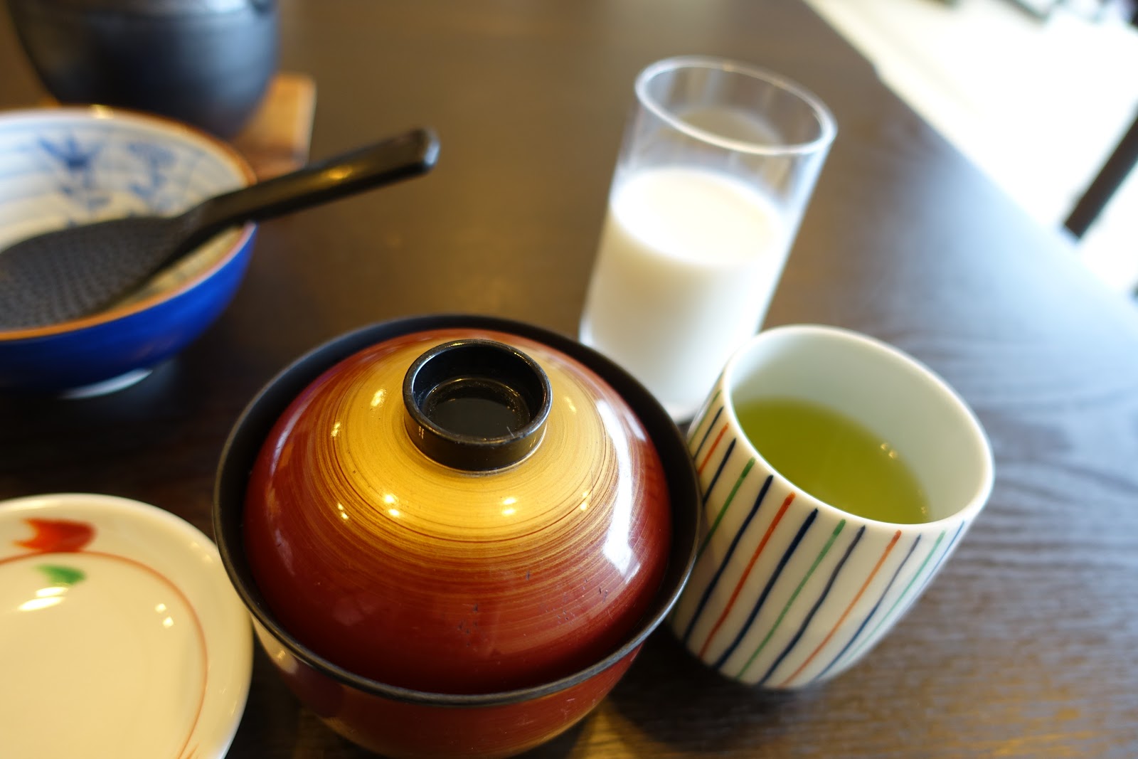 味噌湯、抹茶以及牛奶。