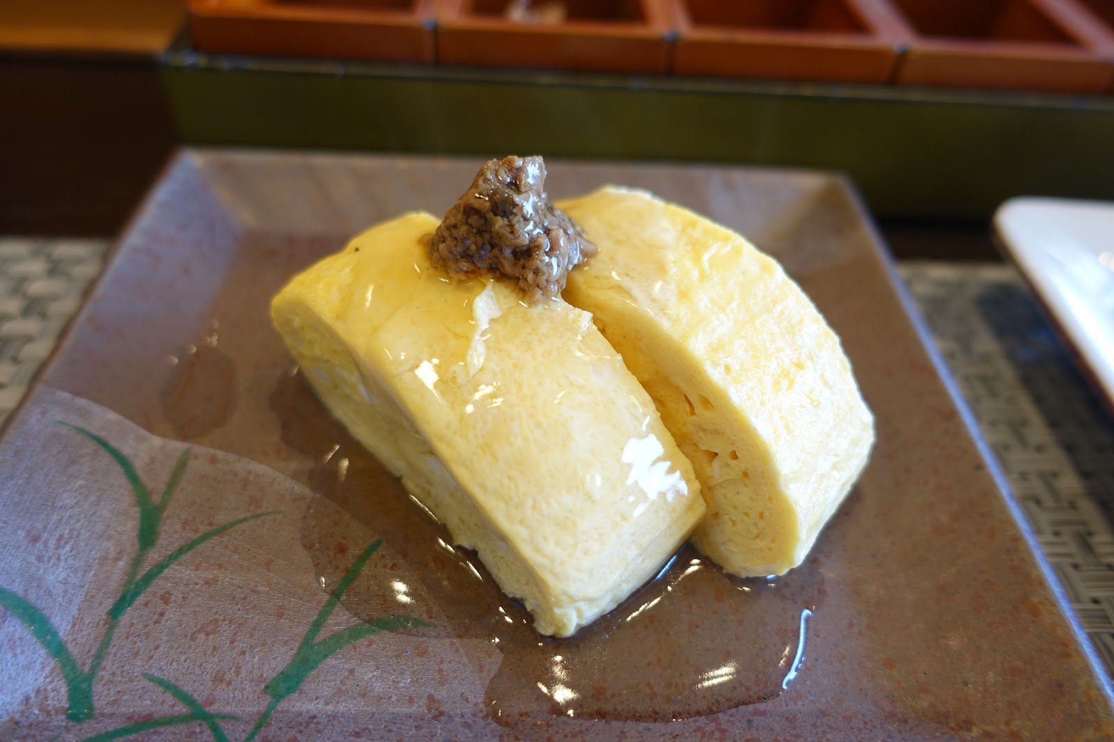 玉子燒本身竟然是甜的!日本人好像很愛吃甜的玉子燒,我已經吃到不只一次。要是鹹的就完美了。(那我為什麼不乾脆去吃煎蛋)